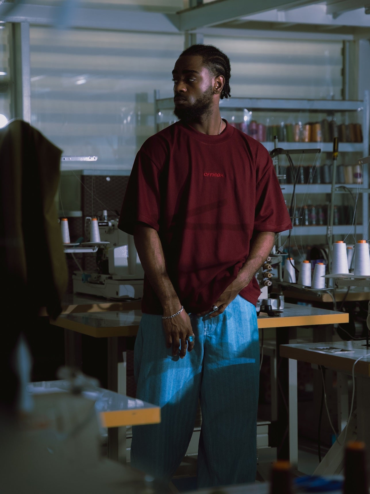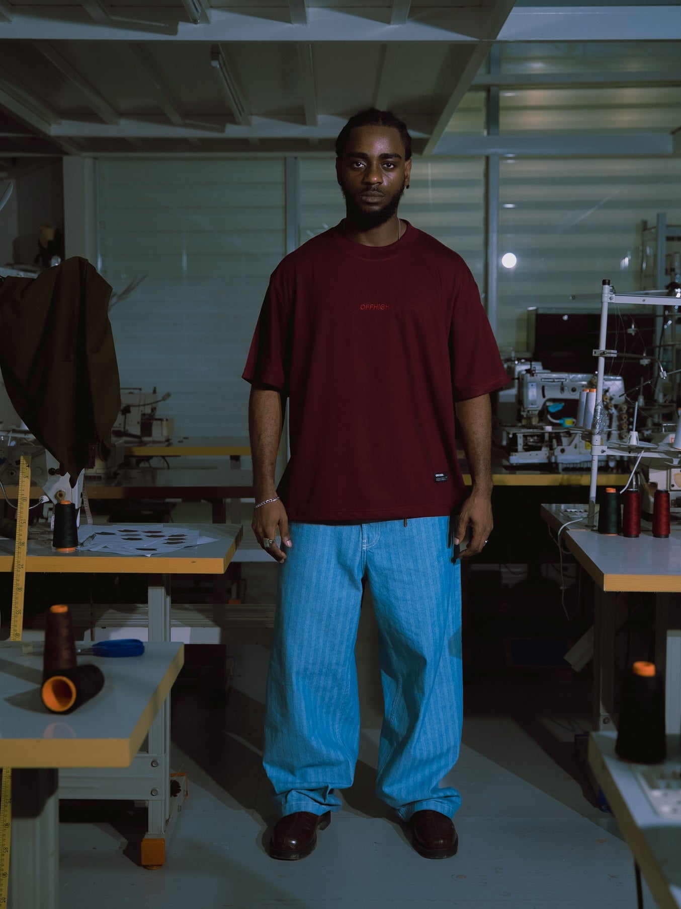 OFFHIGH SHADOW THREAD MAROON TSHIRT (BOXY FIT)